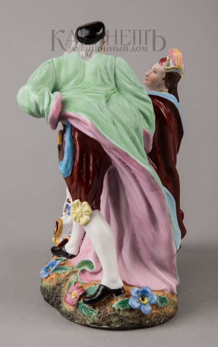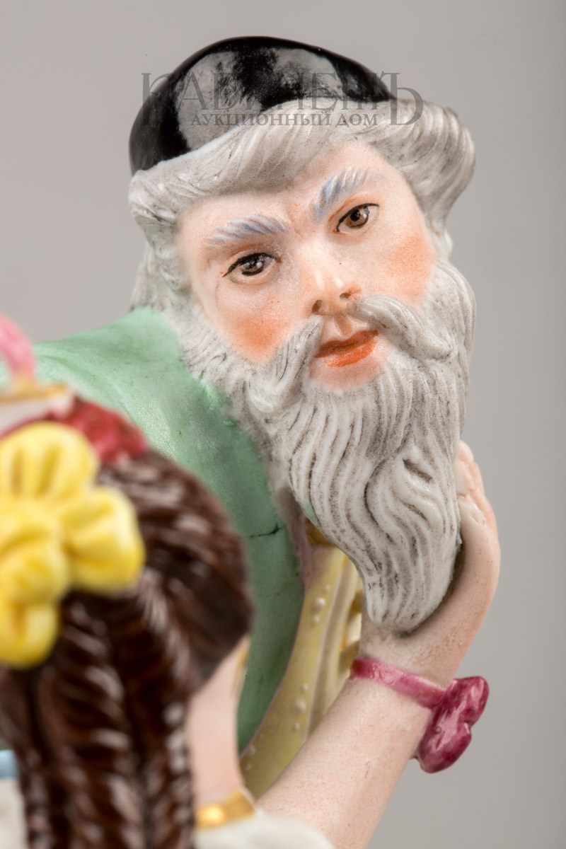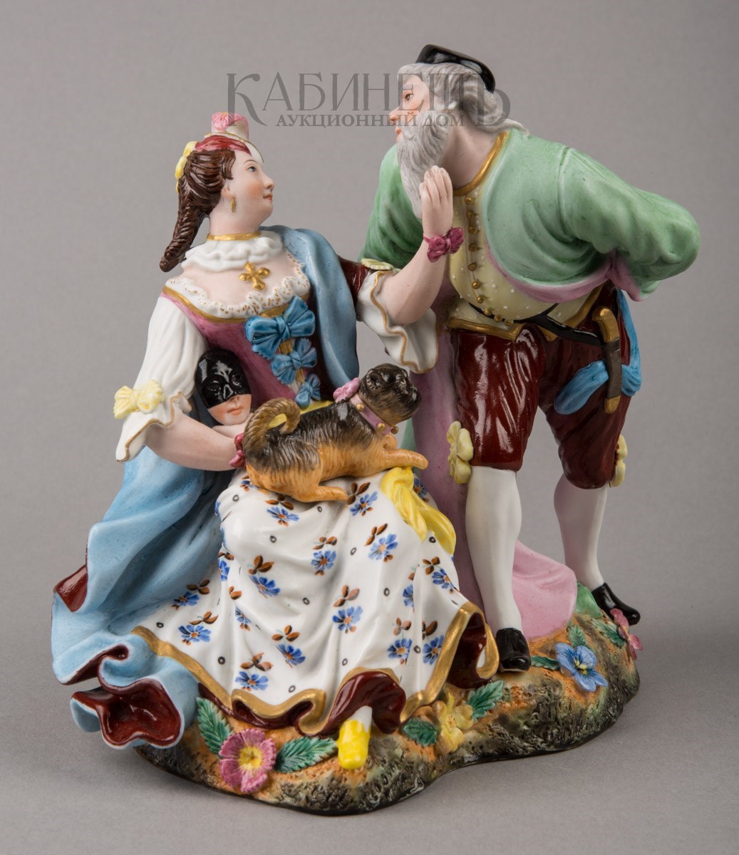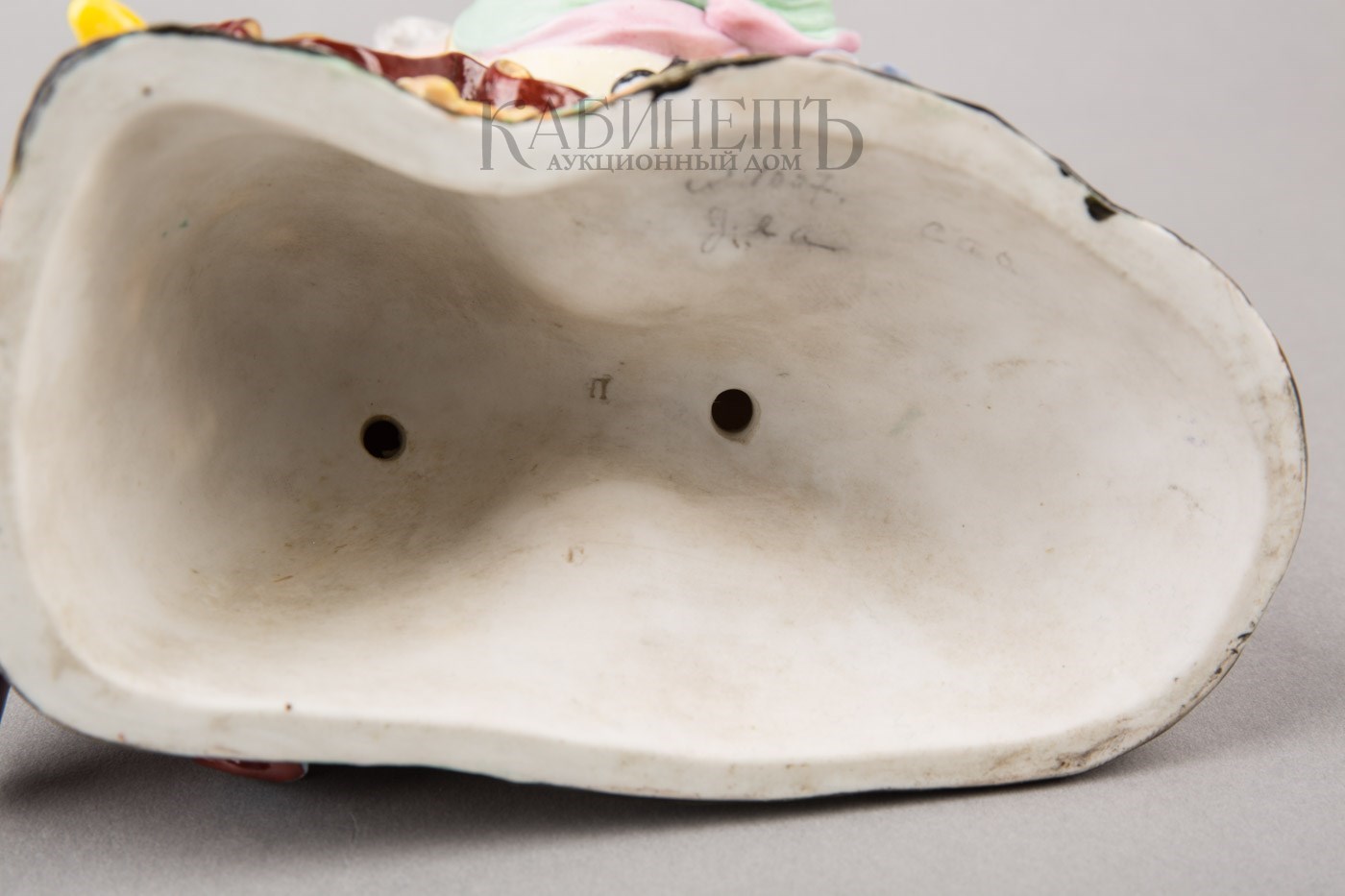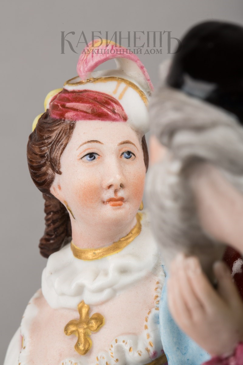 Фарфор, роспись надглазурная полихромная, матовое крытье, позолота Марки: в тесте «АП» и буква «Г».