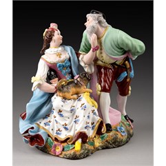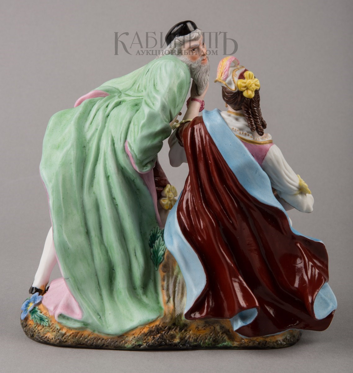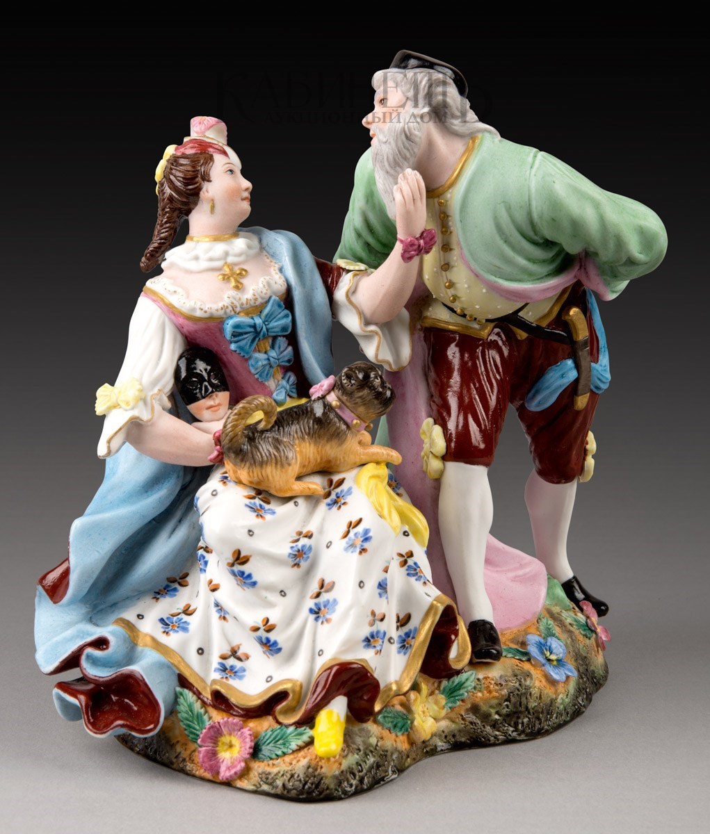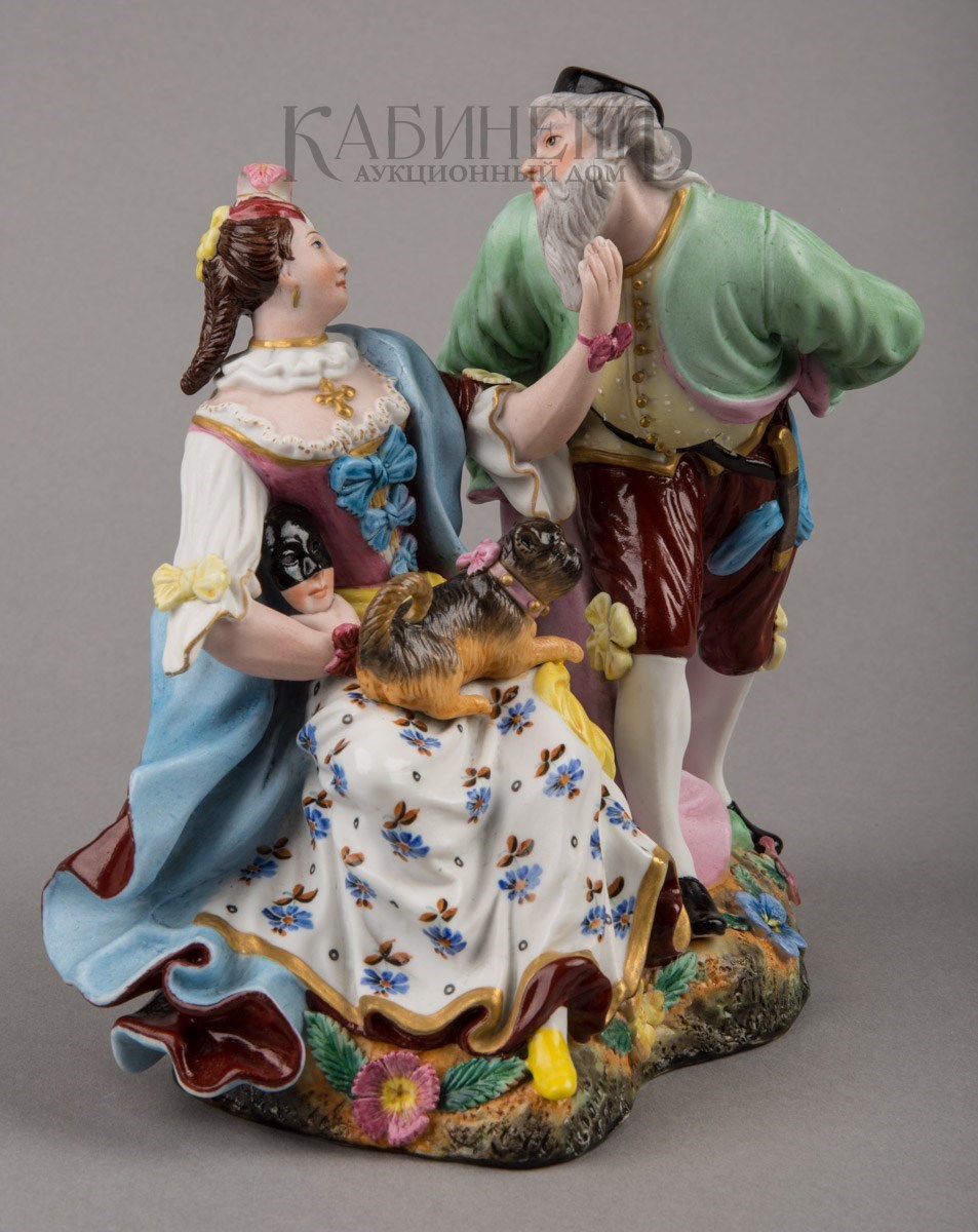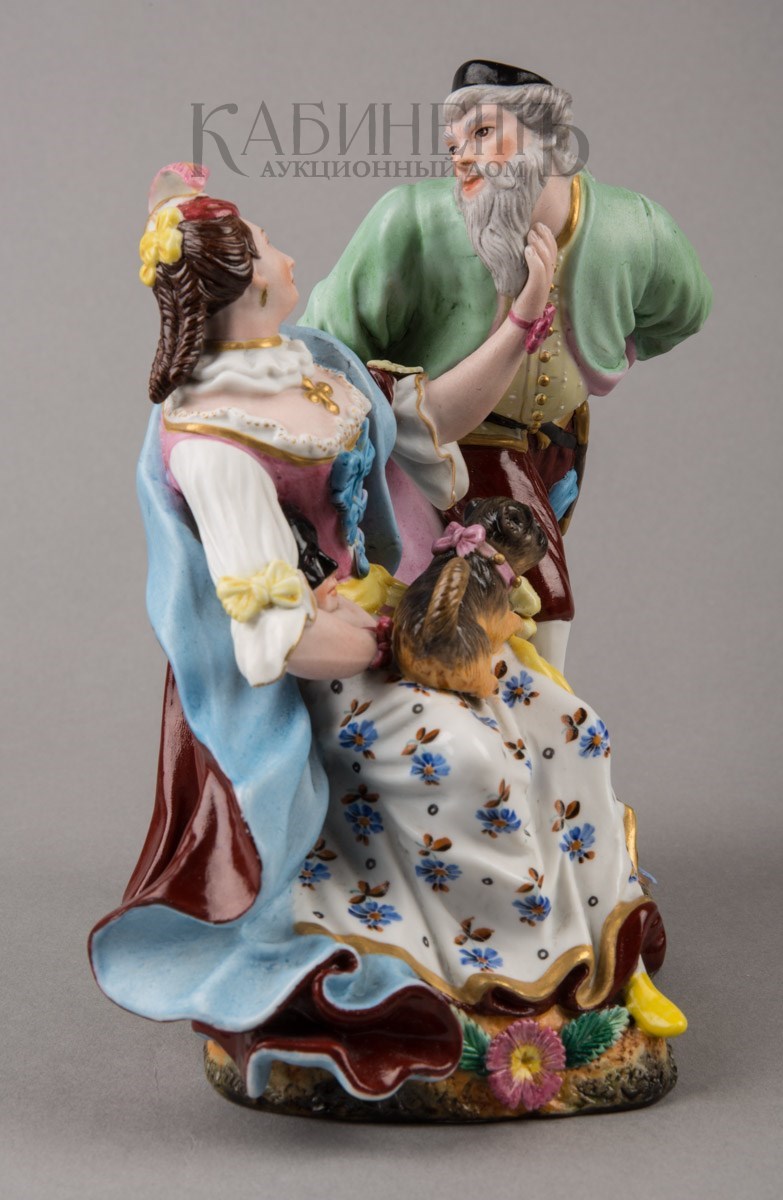Фарфор, роспись надглазурная полихромная, матовое крытье, позолота Марки: в тесте «АП» и буква «Г».