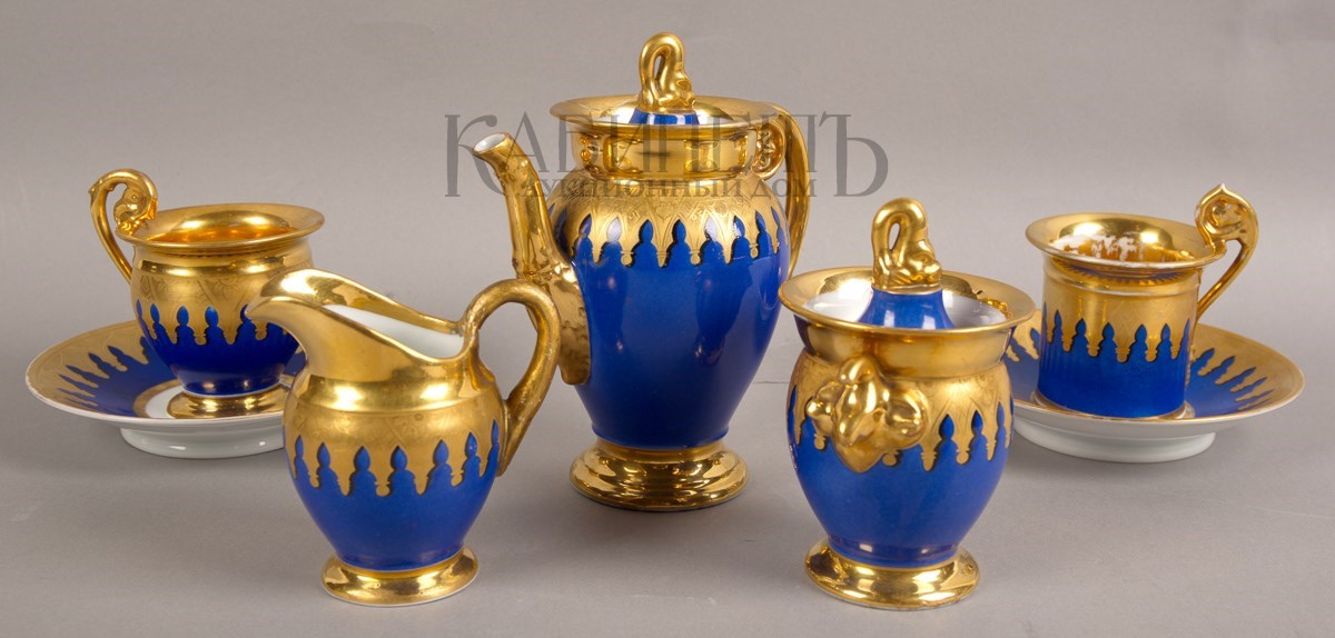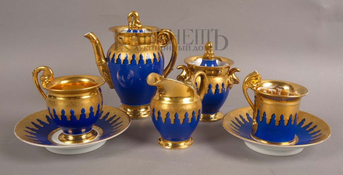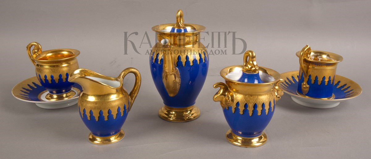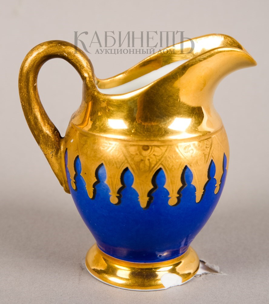 Реставрация верхнего ободка чайника; реставрация ручки молочника, скол на ножке чашки; скол на ножке молочника. Марки: в тесте СПб насл. Батен.