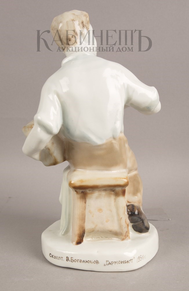 На основании надпись: «Скульпт. В. Боголюбов «Гармонист» 1956 г.».