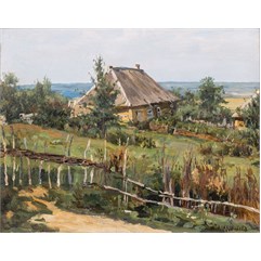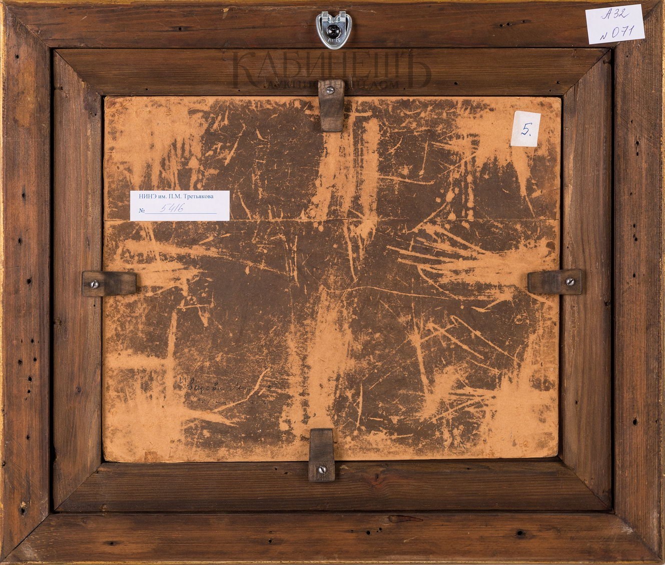 Справа внизу авторская подпись: «М.АЛАДЖАЛОВЪ». На оборотной стороне справа вверху этикетка с номером «5.».