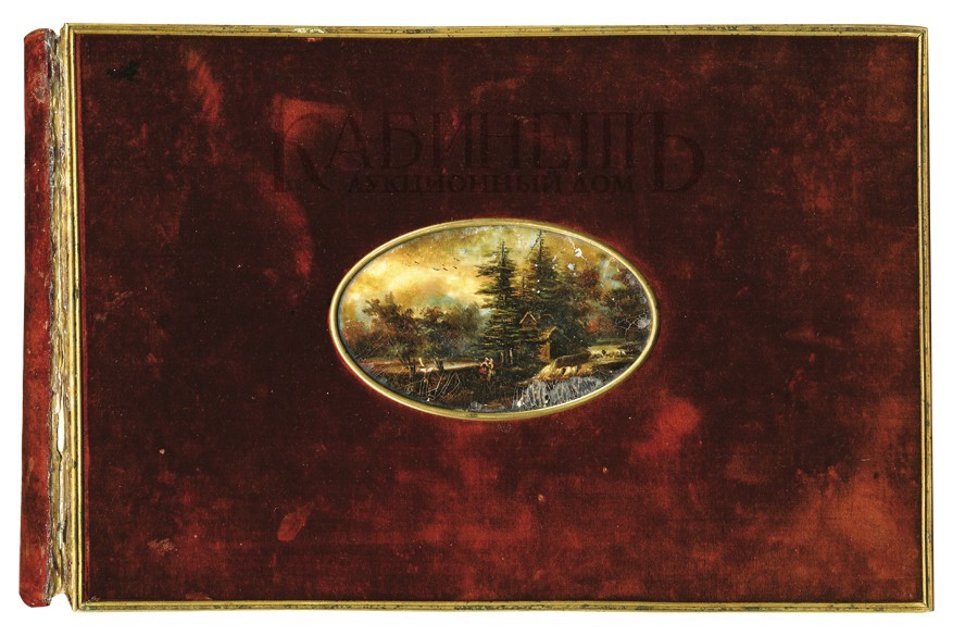 Бархатные крышки, муар, латунь, монтировка, на верхней крышке в овале миниатюра под стеклом, тройной золотой обрез.
