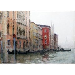 Работая над видами Венеции, Н.В. Досекин стремился передать ощущение тяжелого, сырого воздуха города с помощью приглушенных тонов и размытых контуров предметов и объектов.