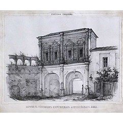 Мартынов А.А. Литография «Ворота с теремом Крутицкого архиерейского дома», из сюиты «Русская старина в памятниках церковного и гражданского зодчества», текст И.М. Снегирева. М., у Августа Семена, 1847.