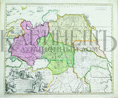 Карта России, выгравирована Иоганном Баптистом Хоманном по карте Эверта Избранта Идеса. Эта картаисключительна количеством изменений, внесенных издателем в ее содержание и название: известно не менее пяти состояний с изменениями. Данная карта относится к первому состоянию. На карте еще отсутствует полуостров Камчатка, и Каспийское море имеет округлую форму. Название еще не изменено с Imperii Moscovitici на Imperii Russorum, изменения были внесены после 1722 года, из чего следует, что она относится к периоду 1710-х годов. Карта украшена мелкими рисунками кораблей и китов. В нижнем углу расположен титульный картуш, украшенный фигурами московитов и аллегорическими фигурами, в центре фигура Петра I. Первое состояние встречается редко. Карта имеет историческое и коллекционное значение. Эверт Избрант (Избрантзоон) Идес (1657—1708/9) — русский купец голландского происхождения, был послан в Китай в 1692 для ведения переговоров об установлении торговых сношений России с Китаем.