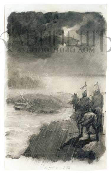 Ушаков И. Иллюстрация к книге В. Сафонова «Дорога на простор» «Гроза на берегу моря». 1960-е г.