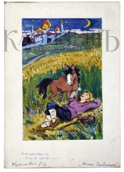 2) «Конек-горбунок и Иван в поле». Эскиз иллюстрации к поэме П.П. Ершова «Конек-горбунок».
