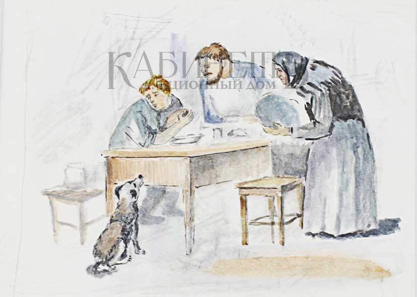 Рудаков К.И. «За столом». Иллюстрация к роману М. Горького «Фома Гордеев».