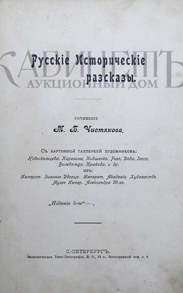 Архив аукциона №7 (33) Лот 163 Чистяков М.Б. Русские исторические рассказы. С картинной галереей художников: Новоскольцева,