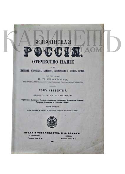 Семенов П.П. Живописная Россия. Отечество наше в его земельном, историческом, экономическом и бытовом значении. Том 4-й. Царство польское: Варшавская, Калитская, Келецкая, Ломжинская, Люблинская, Петроковская, Плоцкая, Радомская, Сувалская и Седлецкая губернии. Часть I, Часть II. СПб. – Москва, издание товарищества О. Вольф, 1896.