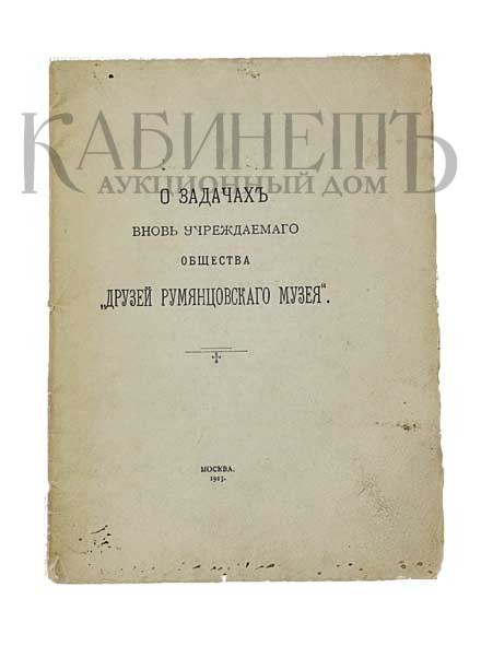 О задачах вновь учреждаемого общества «Друзей Румянцевского музея». М., 1913.