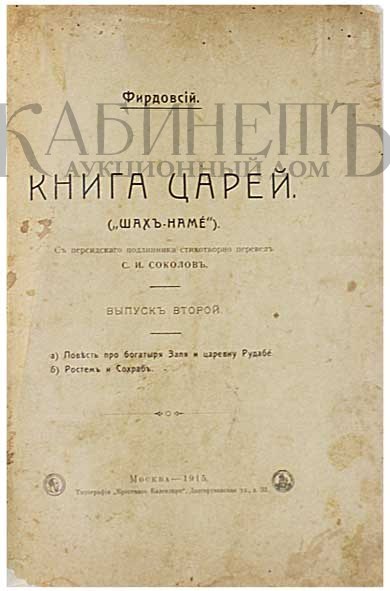 Архив аукциона №7 (33) Лот 288 Фирдовсий. Книга царей. («Шах-Наме»). С персидского подлинника стихотворно перевел