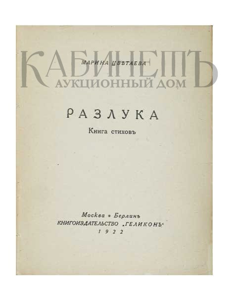 Цветаева М. Разлука. Книга стихов. М., Берлин, Издательство «Геликон», 1922.