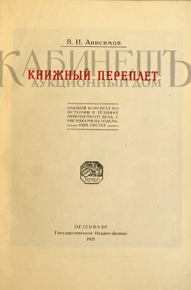Анисимов В.И. Книжный переплет. Краткий конспект по истории и технике переплетного дела, с рисунками на отдельных листах. Петербург, Государственное издательство, 1921.