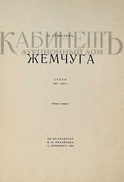 8) Жемчуга. Стихи 1907–1910 г. Изд. 2-е. СПб., Книгоиздательство Н.Н. Михайлова, 1918.