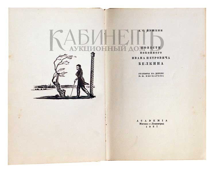 Экземпляр в коленкоровом переплете, большое количество заставок, выполненных в технике ксилография Н.И. Пискаревым.