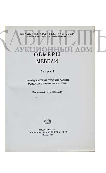 Мебель. Альбом обмеров. Выпуск I. Образцы мебели русской работы конца XVIII – начала XIX века. Под редакцией Н.Н. Соболева. М., Издательство архитектуры СССР, 1940.