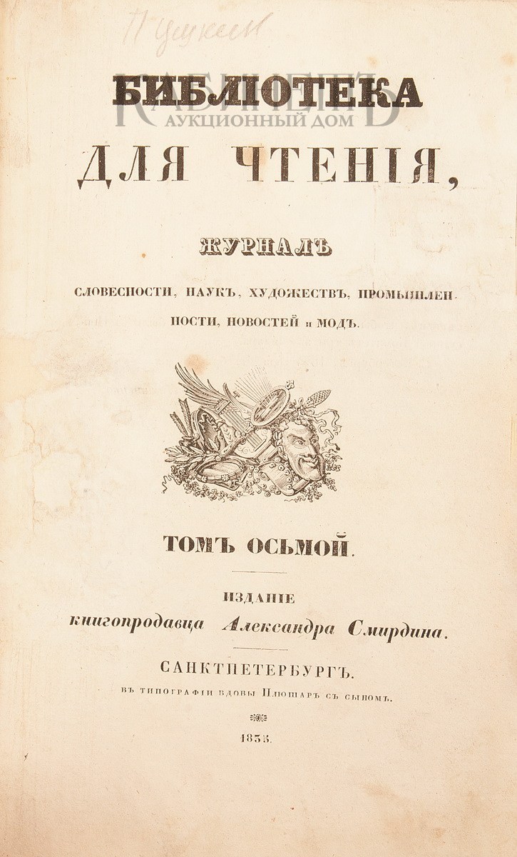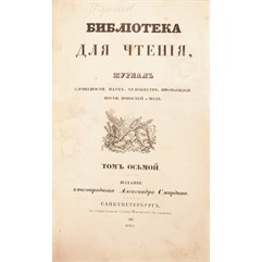 Журнал «Библиотека для чтения». Том VIII. СПб., издание книгопродавца А.Смирдина, в типографии вдовы Плюшара с сыном, 1835.