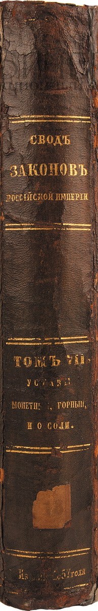 Свод законов Российской империи, издания 1857 года. Том VII. Уставы монетный, горный, и о соли. СПб., в типографии Второго Отделения Собственной его Императорского Величества Канцелярии, 1857.