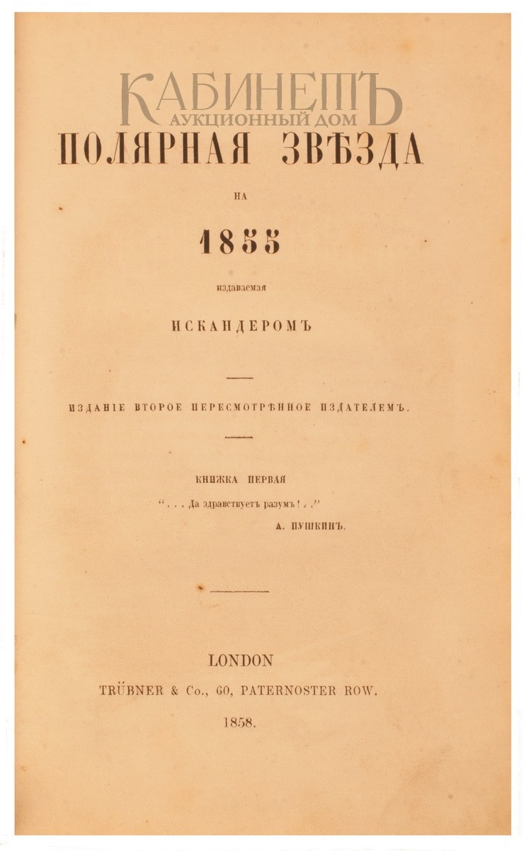 Том I – Полярная звезда на 1855, издаваемая Искандером. Издание второе пересмотренное издателем. London, Trubner&Co, 1858.