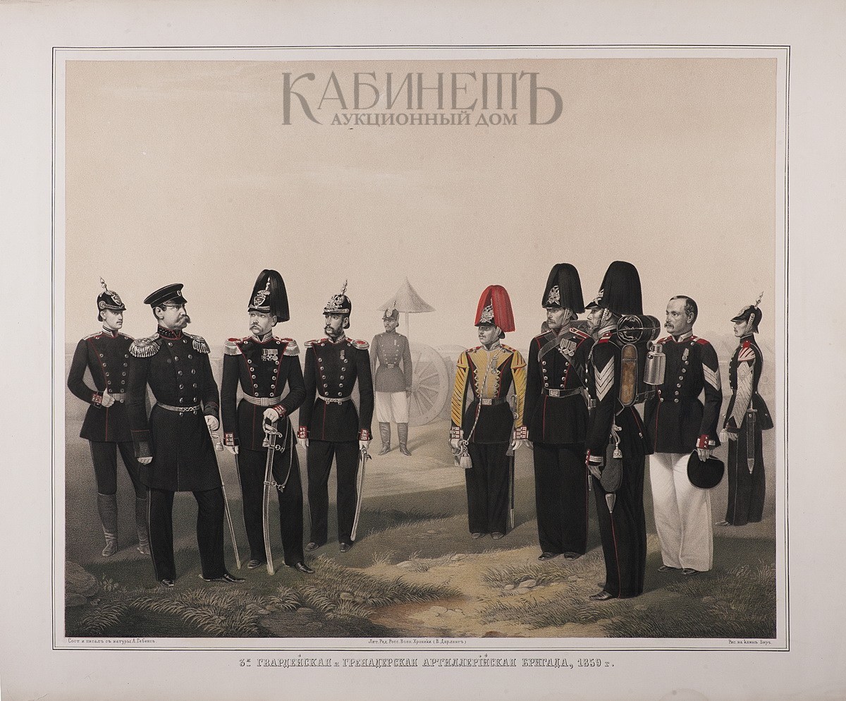 Гебенс А.И. 3-я Гвардейская и Гренадерская артиллерийская бригада, 1859 г. Литография. Гравер Р. Бир. СПб., издание редакции Российской художественной (военной) хроники, литография В. Дарлинга. 1860-е гг.