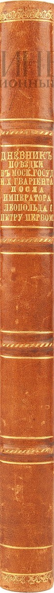 Экземпляр в старинном полукожаном переплете с золотым тиснением по корешку, на титульном листе следы от смытых штампов.