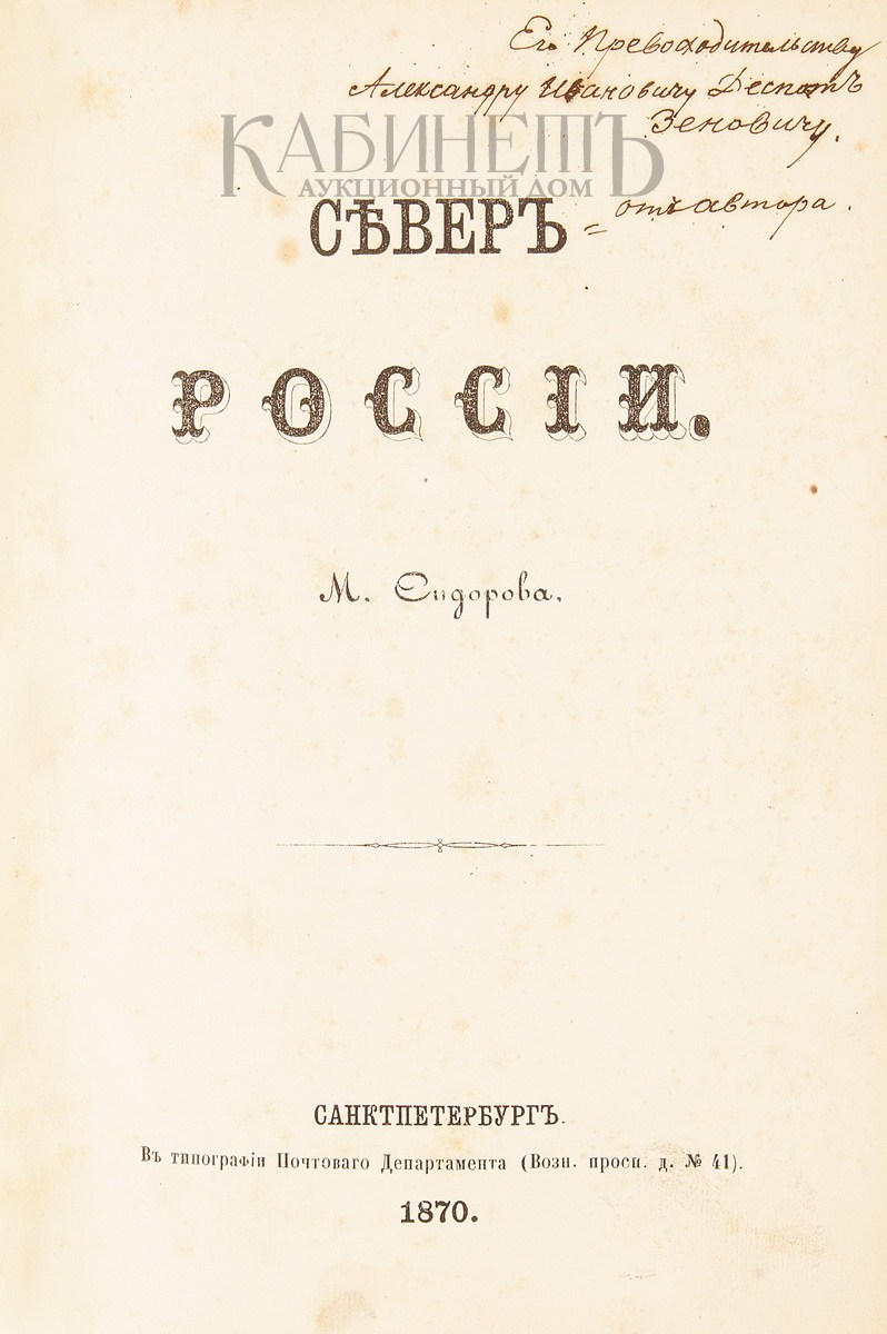 Сидоров М. Север России. СПб., в типографии Почтового Департамента, 1870.
