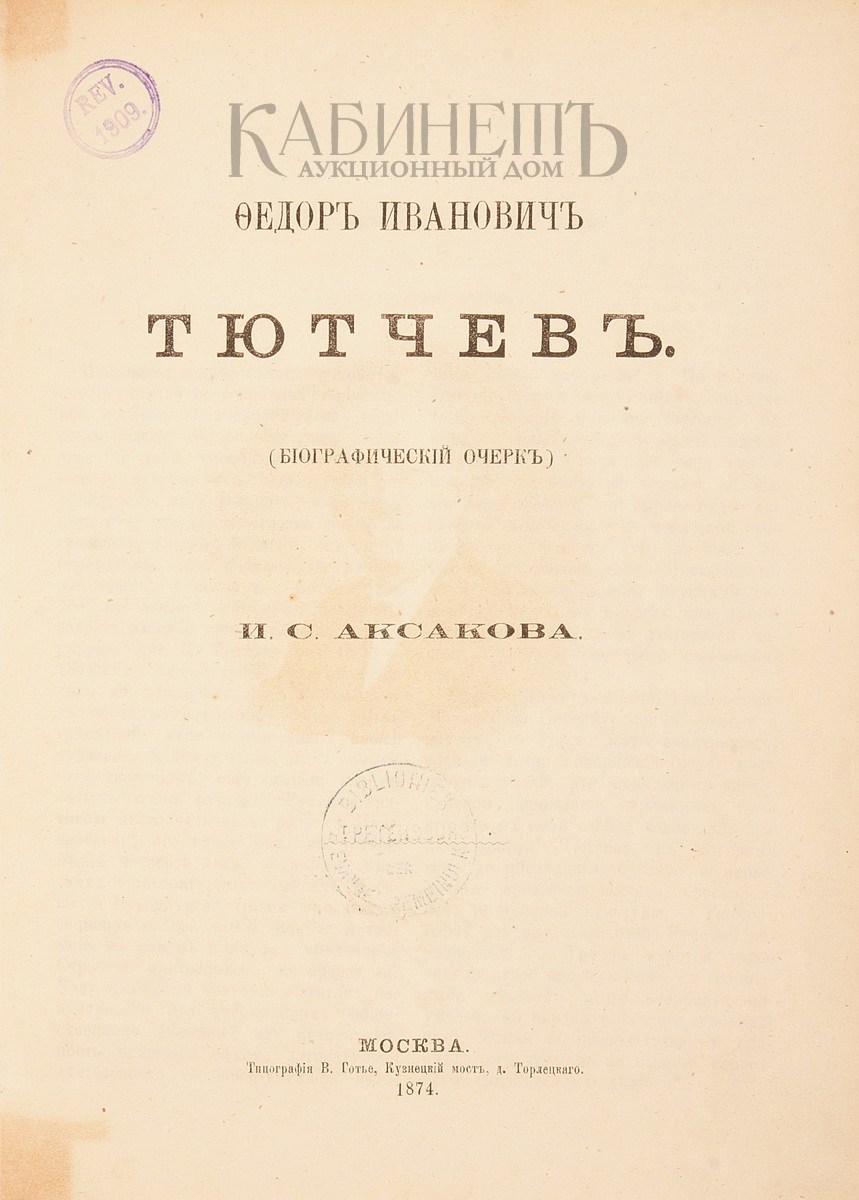 Экземпляр в старинном полукожаном переплете с золотым тиснением по корешку, на титульном листе печать на иностранном языке.
