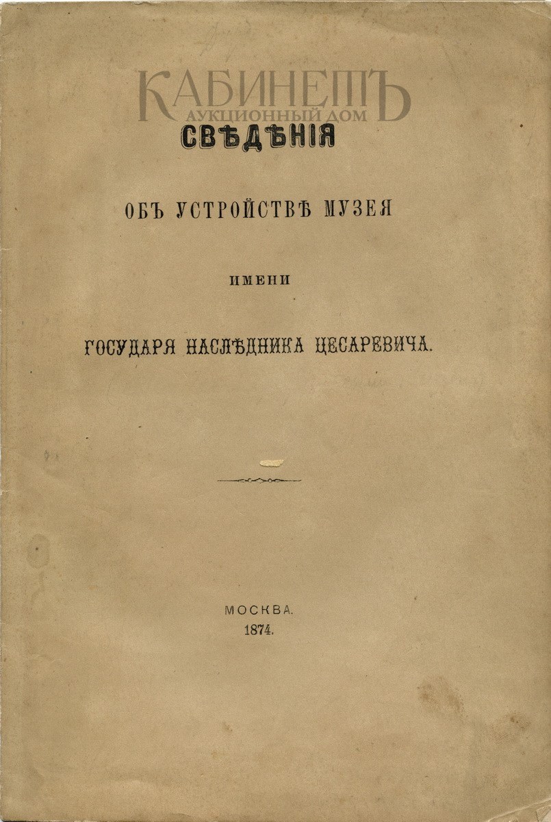 Сведения об устройстве музея имени Государя Наследника Цесаревича. М., Синодальная типография, 1874.