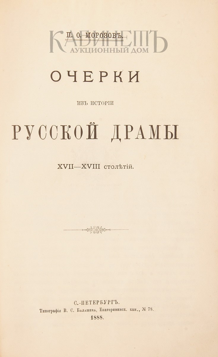 Морозов П.О. Очерки из истории русской драмы XVII–XVIII столетий. СПб., типография В.С. Балашова, 1888.