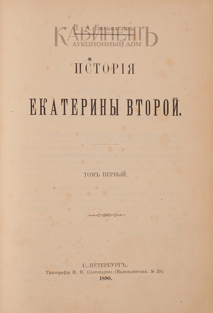 Бильбасов В.А. История Екатерины Второй. В 2-х томах. СПб., Типография Скороходова И.Н., 1890 – 1891.