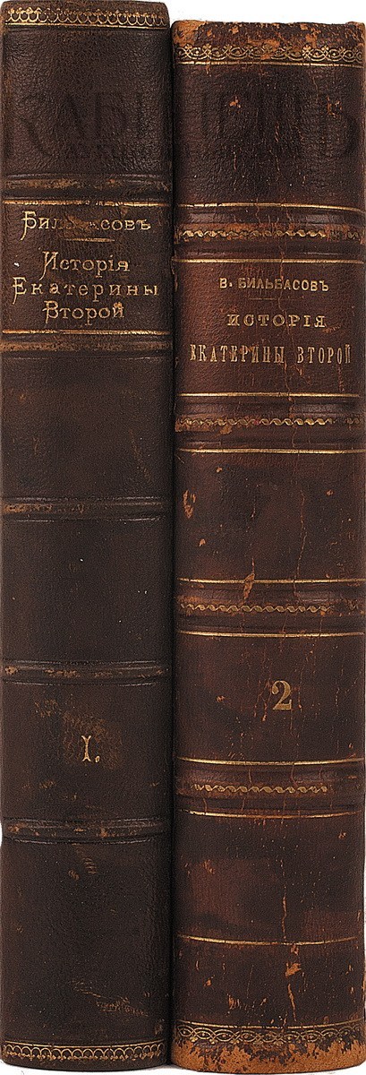 Полный комплект с редким вторым томом, в свое время запрещенным цензурой к распространению. «История Екатерины II» - главный труд Василия Бильбасова - представляет ценный вклад в историю эпохи, которая до него была мало изучена русскими исследователями.