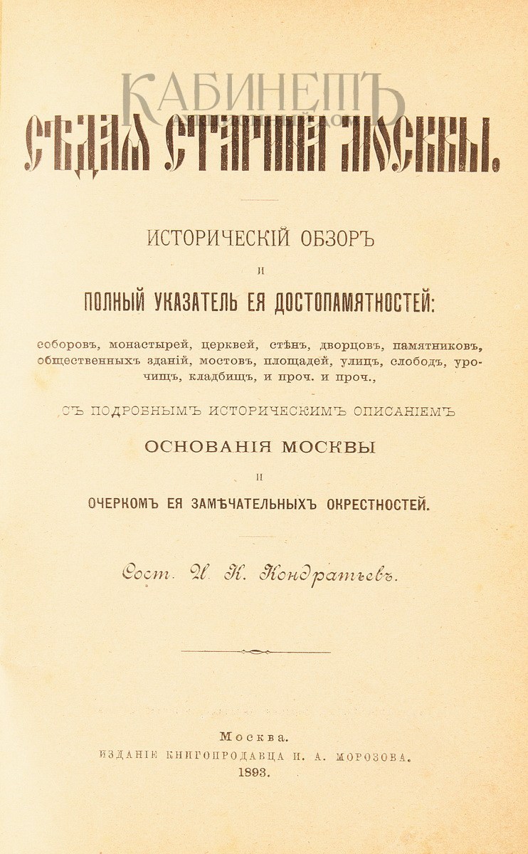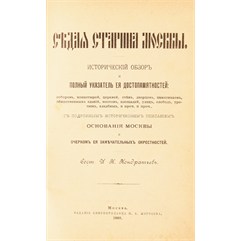 Кондратьев И.К. Седая старина Москвы. Исторический образ полный указатель ее достопамятностей. С подробным историческим описанием основания Москвы и очерком ее замечательных окрестностей. М., издание книгопродавца И.А.Морозова, 1893.