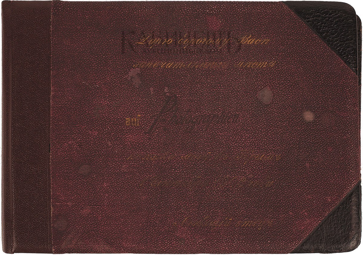 Экземпляр в старинном коленкоровом переплете, с угасшей надписью золотого тиснения на верхней крышке: «Дарю дорогому Васъ /запечатленные места / поездки моей въ Крымъ / 1 сентября 1903 года / любящiй отецъ». На форзацах и фотографиях встречается штамп: «Сошин Геннадий Гаврилович Ялта».