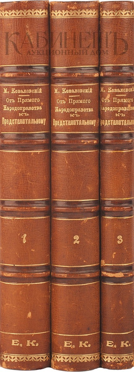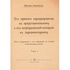 Ковалевский М. От прямого народоправства к представительному и от патриархальной монархии к парламентаризму. Рост государства и его отражение в истории политических учений. В 3 томах. М., типография товарищества И.Д.Сытина, 1906.