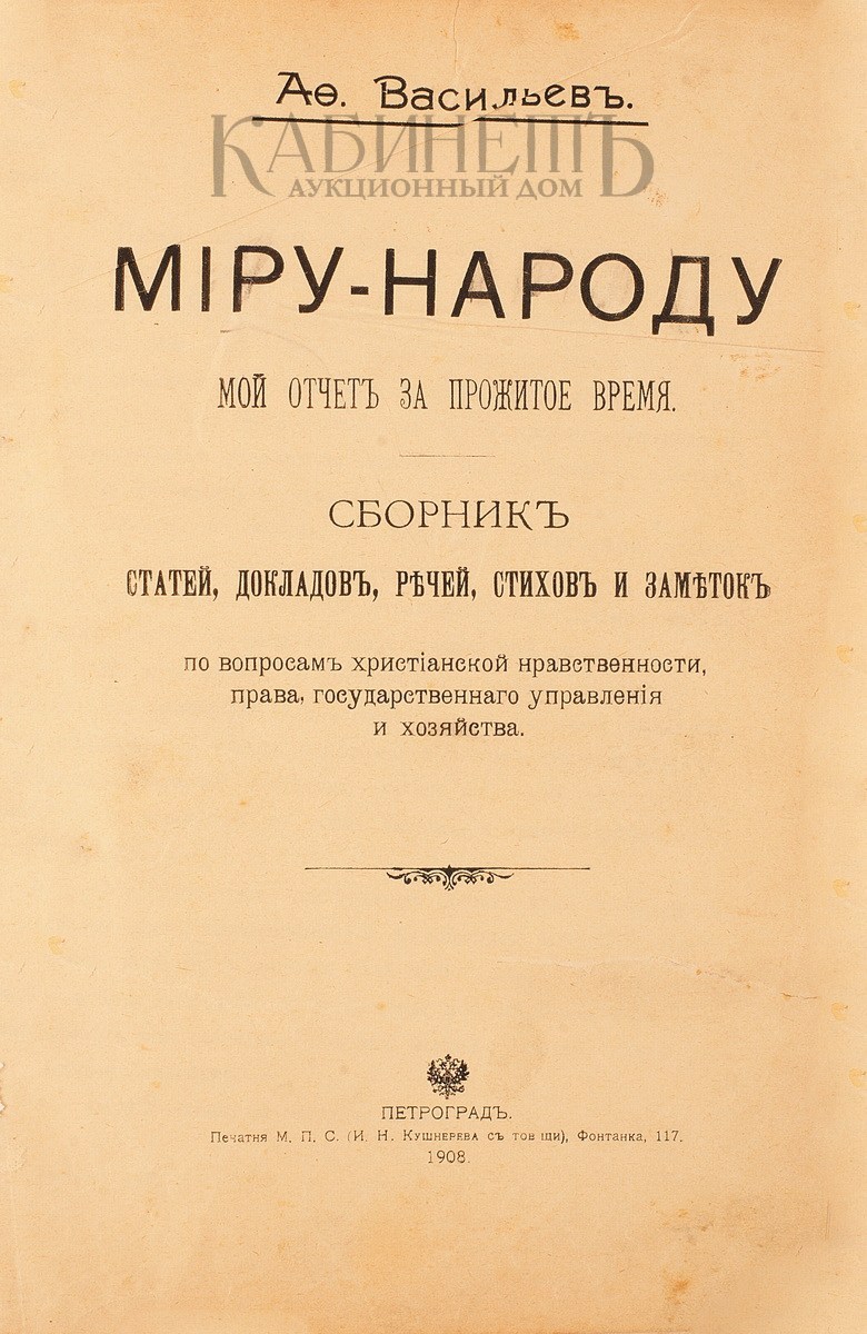 Экземпляр в старинном полукожаном переплете с золотым тиснением по корешку, некоторые страницы реставрированы, на форзаце расположен автограф А. Васильева.