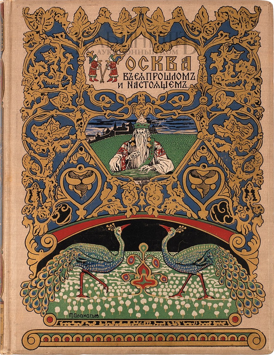 Экземпляр в издательских художественных коленкоровых переплетах в стиле модерн, с полихромным тиснением по корешкам и крышкам, работы известного художника П. Афанасьева. Под переплетами сохранены издательские обложки, так же работы П. Афанасьева. Сохранность очень хорошая.