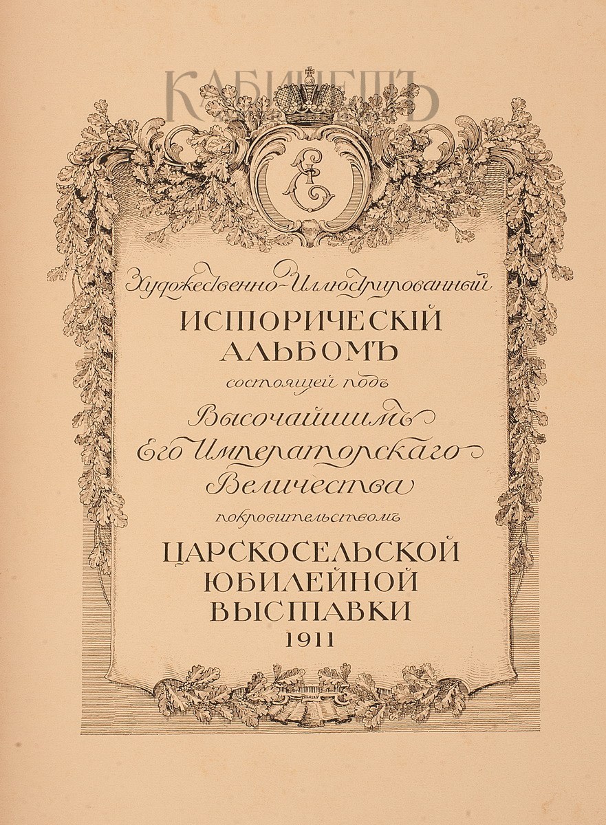 Роскошный художественно-иллюстрированный альбом посвящен Юбилейной Царскосельской выставке, проходившей в 1911 г., с 6-ю портретами императора и представителей царской фамилии. В издание включены очерк по истории Царского Села, рассказывающий об идее и обустройстве выставки, представлен список выставочных отделов.