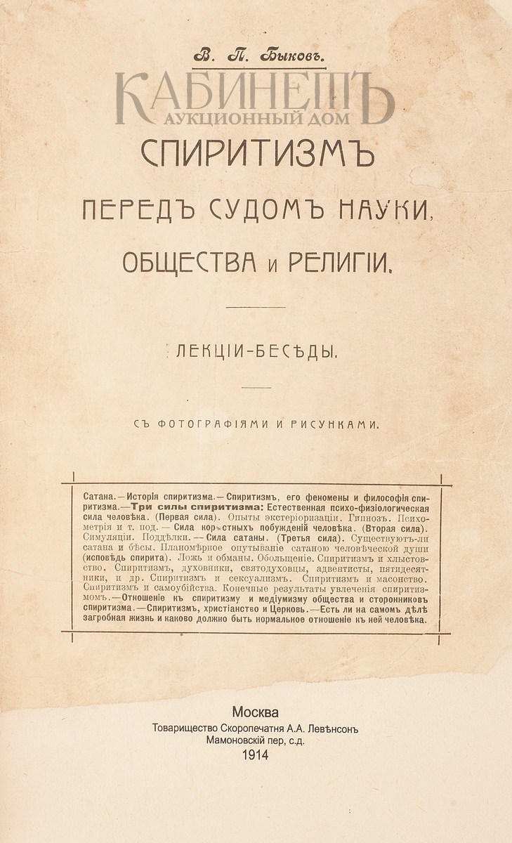 Быков Владимир Павлович — писатель, биолог, масон, знаменитый московский спирит, руководитель кружка «Спиритуалистов-догматиков», редактор-издатель журналов «Спиритуалист» (1905–1912), «Голос всеобщей любви» (1906–1909), «Смелые мысли» (1909–1911), «Вифезда» (1911–1912), и газеты спиритуально-оккультного направления «Оттуда» (1907–1911). Писал под псевдонимом В. П. Пироцкий. Широкую известность среди современников получила его серия выпусков «Тихие приюты для отдыха страдающей души: лекции-беседы» (1915–1917). С 1918 г. — красный священник.