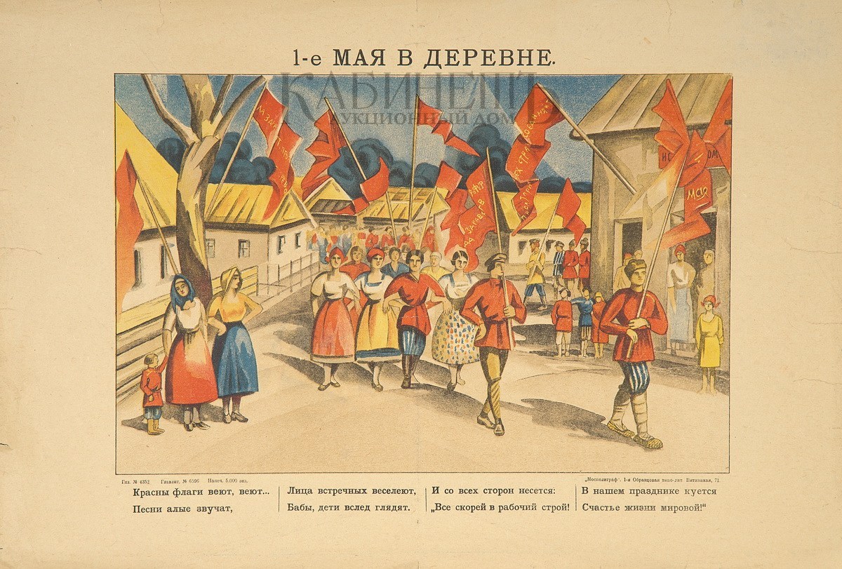 Плакат «1 мая в деревне». М., «Мосполиграф» 1-я образцовая типо-литография, [1920 – е гг.].