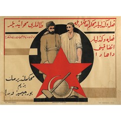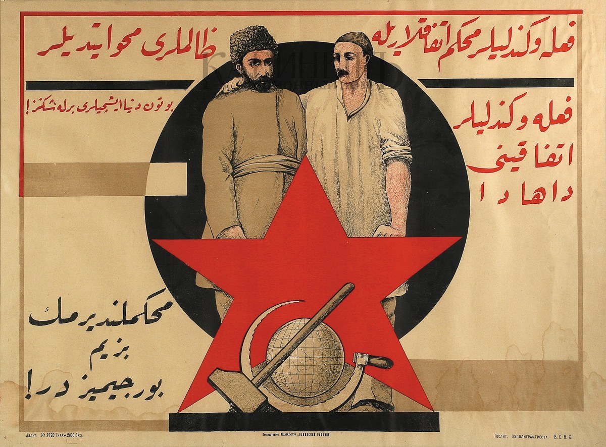 «Бакинский рабочий и Бакинский крестьянин». Плакат. Баку, кооперативное издательство «Бакинский рабочий», Азполиграфтрест В.С.Н.Х., Аэлит № 2720, [1920-е]