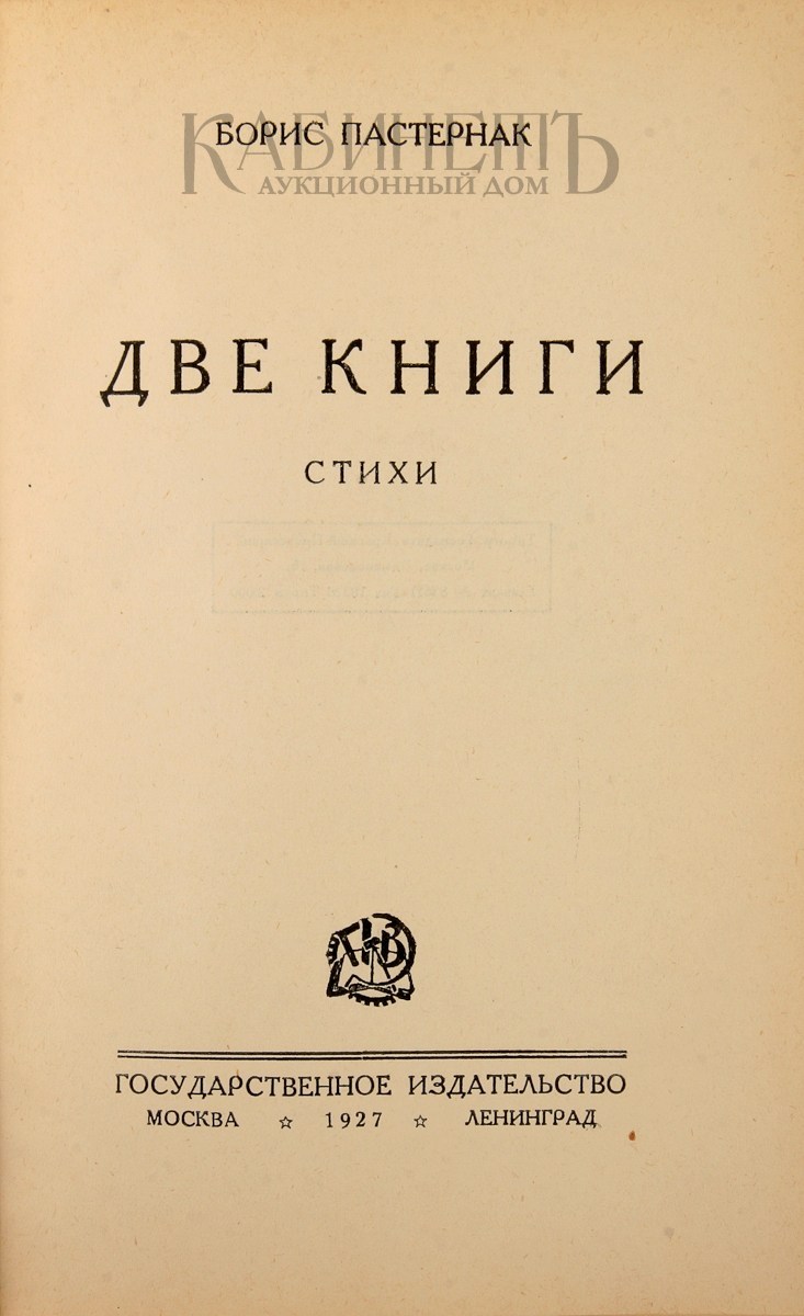 Пастернак Б. Две книги. Стихи. М. – Л., Государственное издательство, 1927.