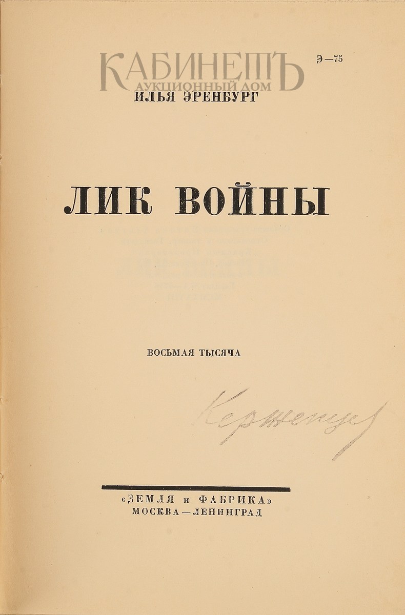 Эренбург И. Лик войны. Восьмая тысяча. Из собрания сочинений том VIII. М. - Л., «Земля и фабрика», 1928.