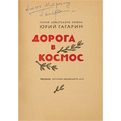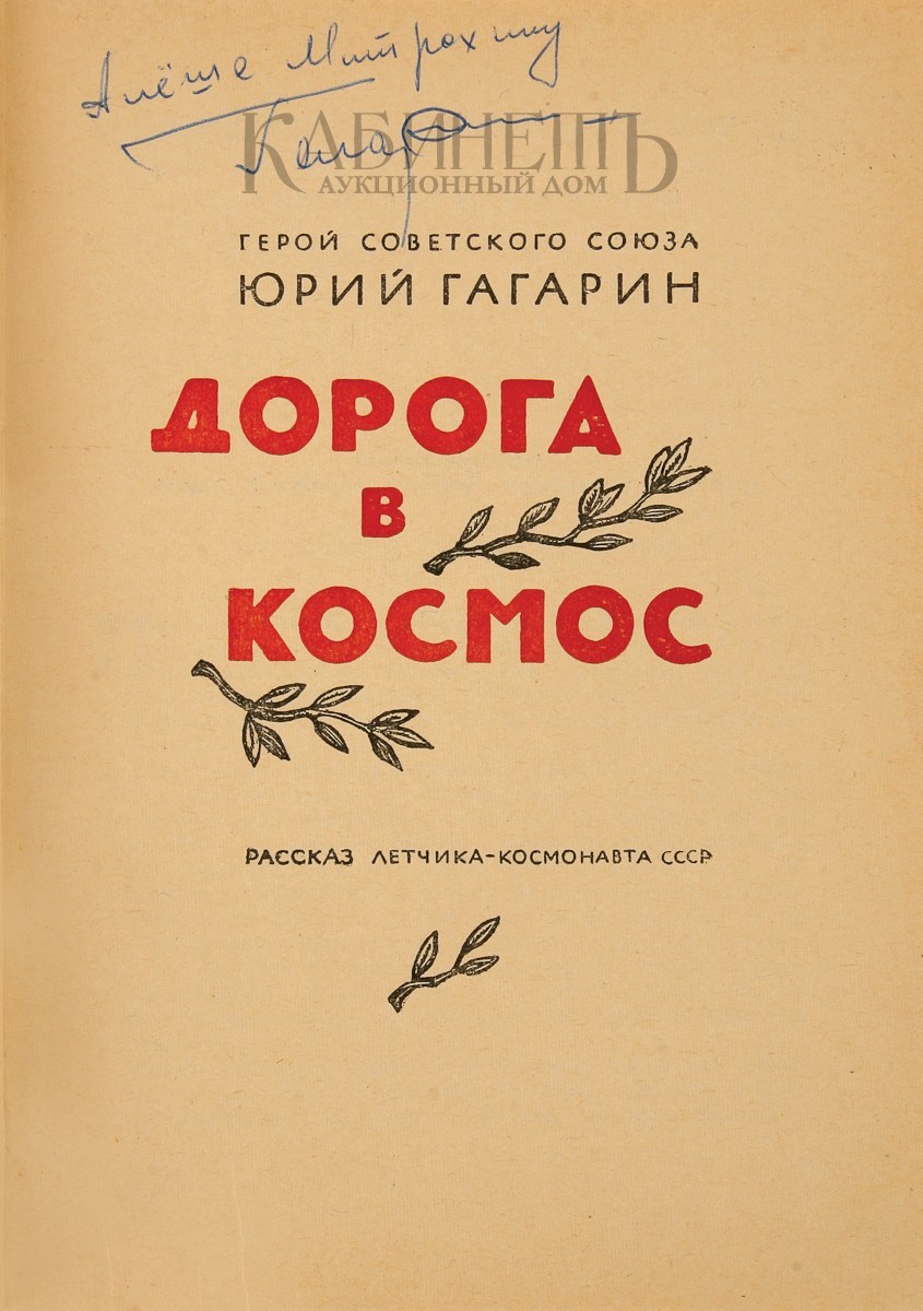 Экземпляр в издательском коленкоровом переплете, на титульном листе расположен автограф Юрия Алексеевича Гагарина: «Леше Митрохину. Гагарин».