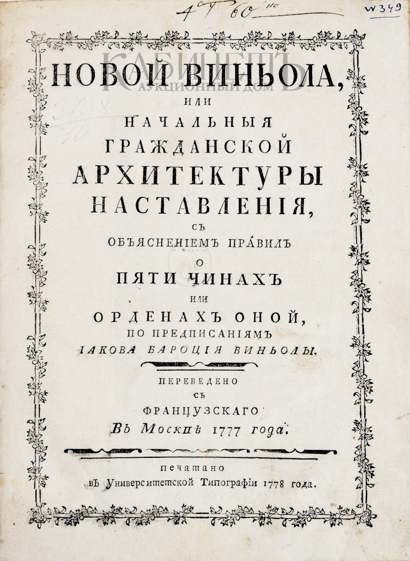 Виньолы. Переведено с французского в Москве 1777 года. М.,
