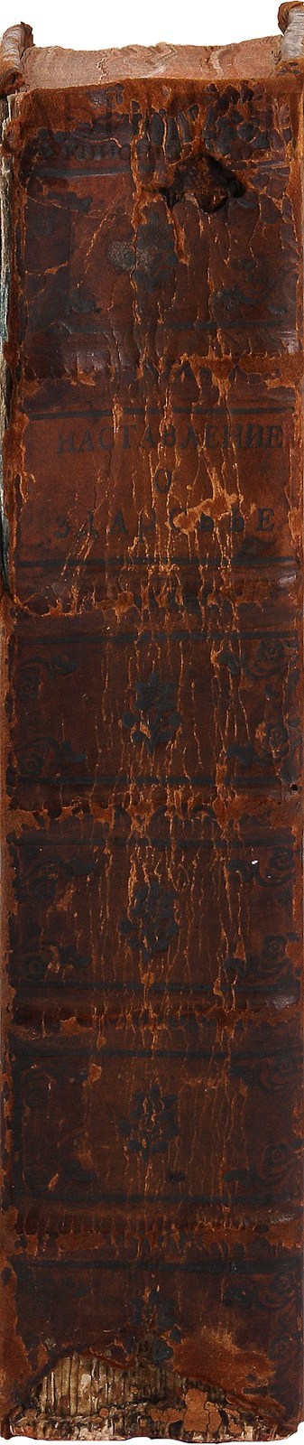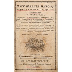 Экземпляр в старинном полукожаном переплете, верхняя часть корешка надорвана, нижняя часть корешка утрачена.