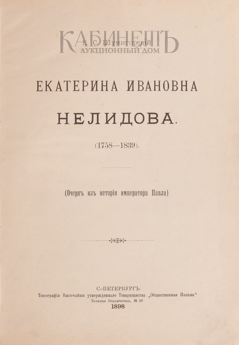 Шумигорский Е.С. Екатерина Ивановна Нелидова (1758 – 1839) (Очерк из истории Императора Павла). СПб., Типография Высочайше утвержденного Товарищества «Общественная Польза», 1898.