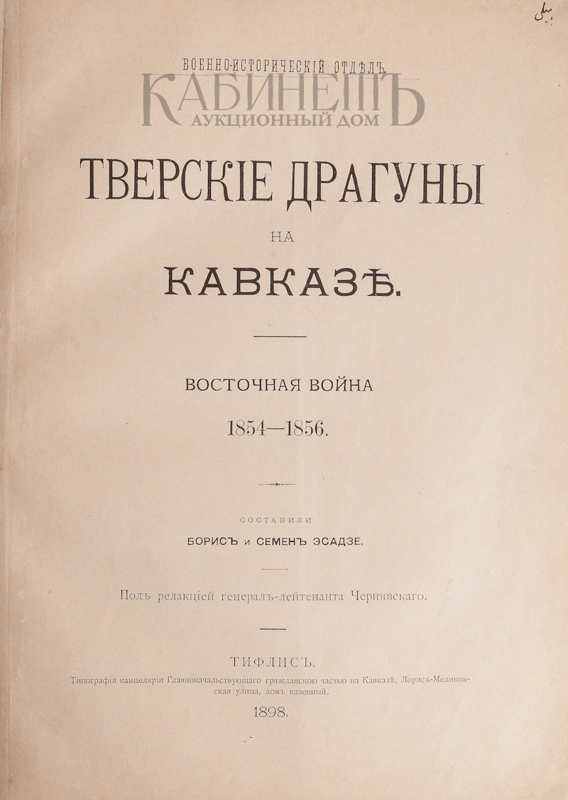 Эсадзе Б., Эсадзе С. Тверские драгуны на Кавказе. Восточная война 1854 – 1856. Под редакцией генерал-лейтенанта Чернявского. Тифлис. Типография канцелярии Градоначальствующего гражданской частью на Кавказе, 1898.
