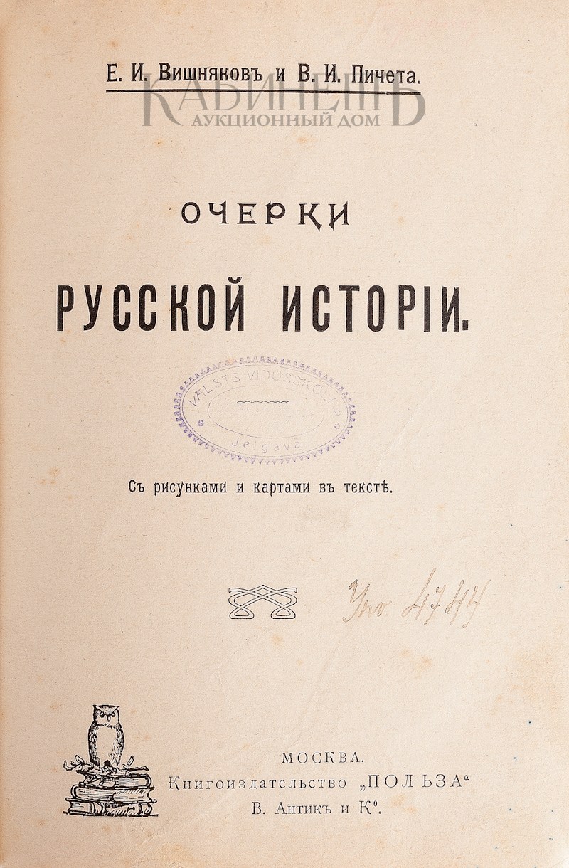 Вишняков Е.И., Пичета В.И. Очерки Русской истории. С рисунками и картами в тексте. М., Книгоиздательство «Польза» В. Антик и Ко, [1900]