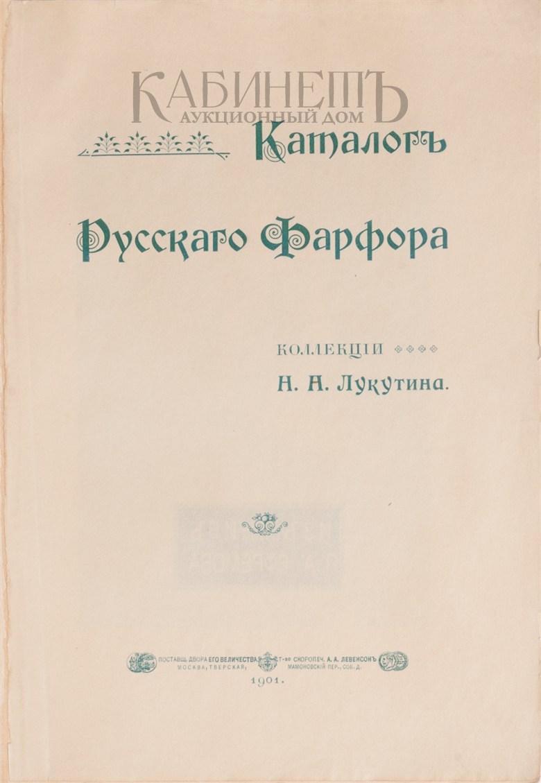 Каталог русского фарфора коллекции Н.А. Лукутина. М., Товарищество Скоропечатни А.А. Левинсон, 1901.